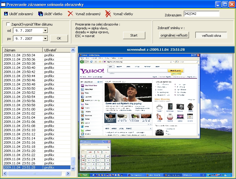 - všetko čo sa deje na obrazovke monitora, teda na pracovnej ploche. Pri snímaní obrazovky sa dá nastaviť časový interval (najnižší je jedna sekunda) a kvalita snímky.